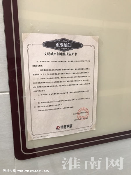 “從開始部署到現在執行情況看,不含兩縣及毛集,共有180多個小區投入到此次整改行動,而且現在還陸續有小區加入進來。對于整改情況,一開始由小區申報,區里先驗收,驗收合格后,我們再進行復驗,對于不合格的下整改通知書,對于在檢查過程中隨時發現的問題,也會隨時下整改通知書,限期整改。”市房產局物業監管科謝麗霞科長告訴淮河早報、淮南網創城報道組記者。