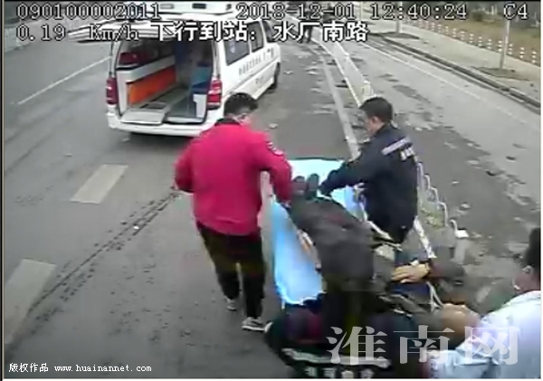 12月2日下午,從老人的家人處了解到,老人今年83歲,患有心臟病。“由于救治及時,父親已轉危為安……”老人的兒子對G1路公交車駕駛員熊順興和好心乘客的及時相救深表感謝。圖一為熊順興為癱倒在地的老人喂藥。圖二為熊順興幫助醫務人員將老人送上急救車。 (圖片為車載監控視頻截圖)(記者 張明星 通訊員 沈濤)